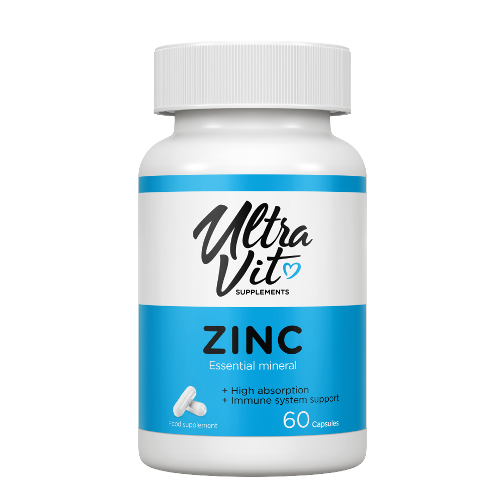 "UltraVit's ZINC" yra labai svarbus papildas augimui, palaikymui ir bendrai sveikatos būklei palaikyti. 60 lengvai nuryjamų kapsulių užtikrina gerą imuninės sistemos, regėjimo, nervų sistemos, augimo ir medžiagų apykaitos palaikymą.