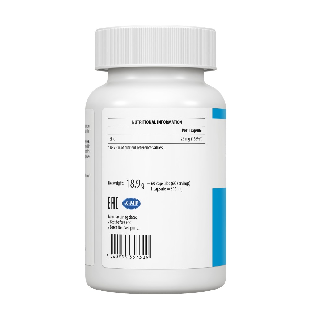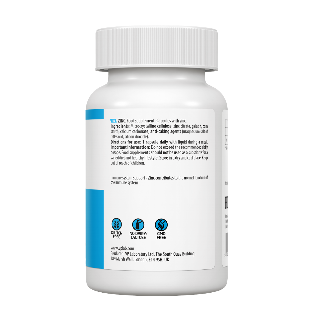 Ingredients: Microcrystalline cellulose, zinc citrate, gelatin, corn starch, anti-caking agents (magnesium stearate, silicon dioxide)